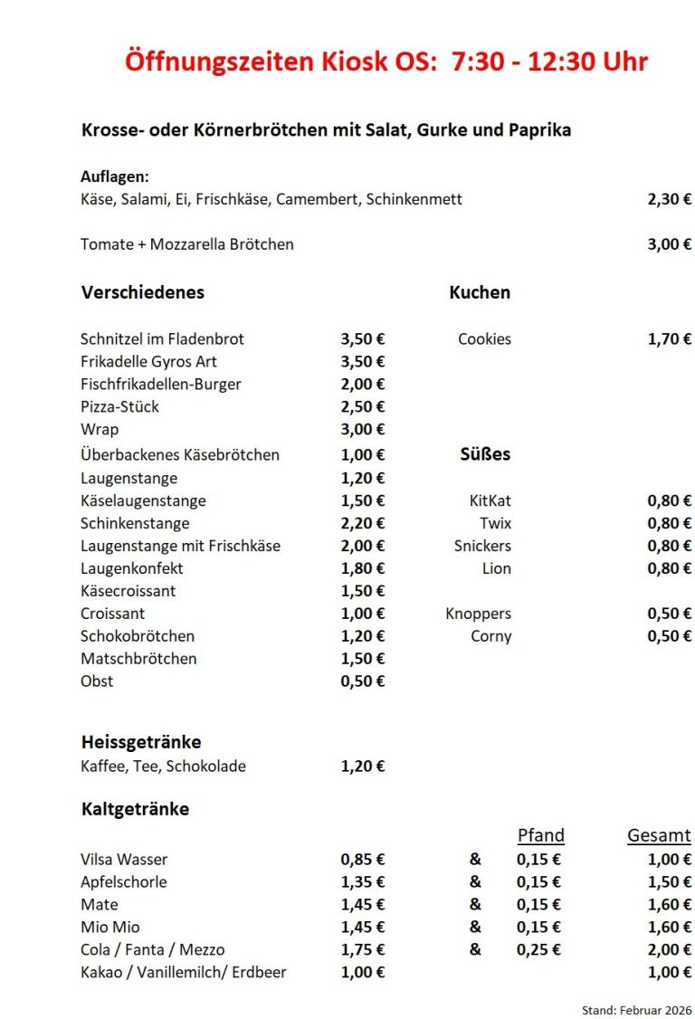 Das Angebot im Kiosk der OS